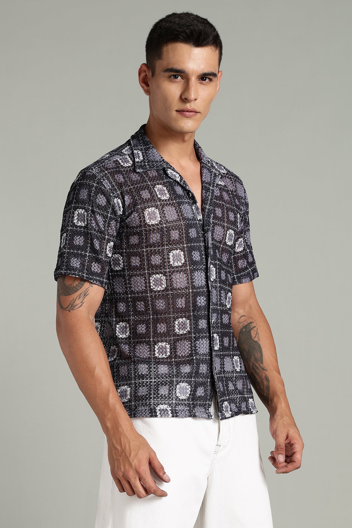 Elevate your style with the Smoke Corchet Abstract Shirt, designed to make a bold statement. Featuring a unique abstract pattern, this shirt adds artistic flair to any outfit. Crafted for comfort and versatile wear, it seamlessly transitions from casual outings to social gatherings. Stand out effortlessly while enjoying a comfortable fit that lasts all day. Make the Smoke Corchet Abstract Shirt your go-to piece for confident, contemporary style.