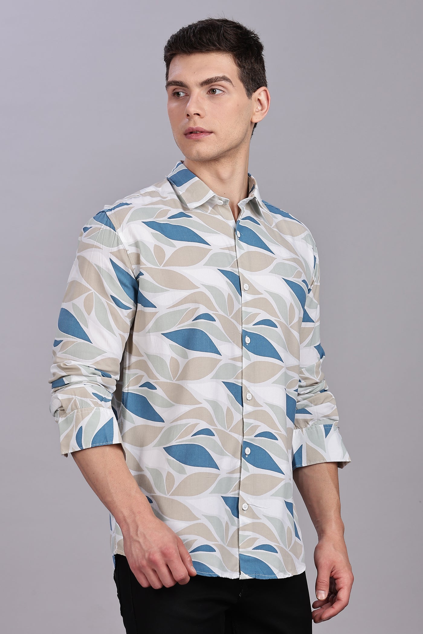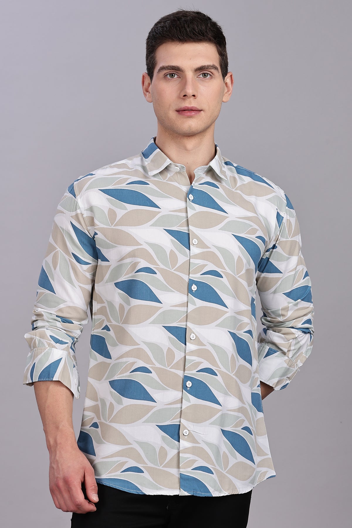 SMOKE ABSTRACT RAYON PRINTED SHIRT [blue] - M