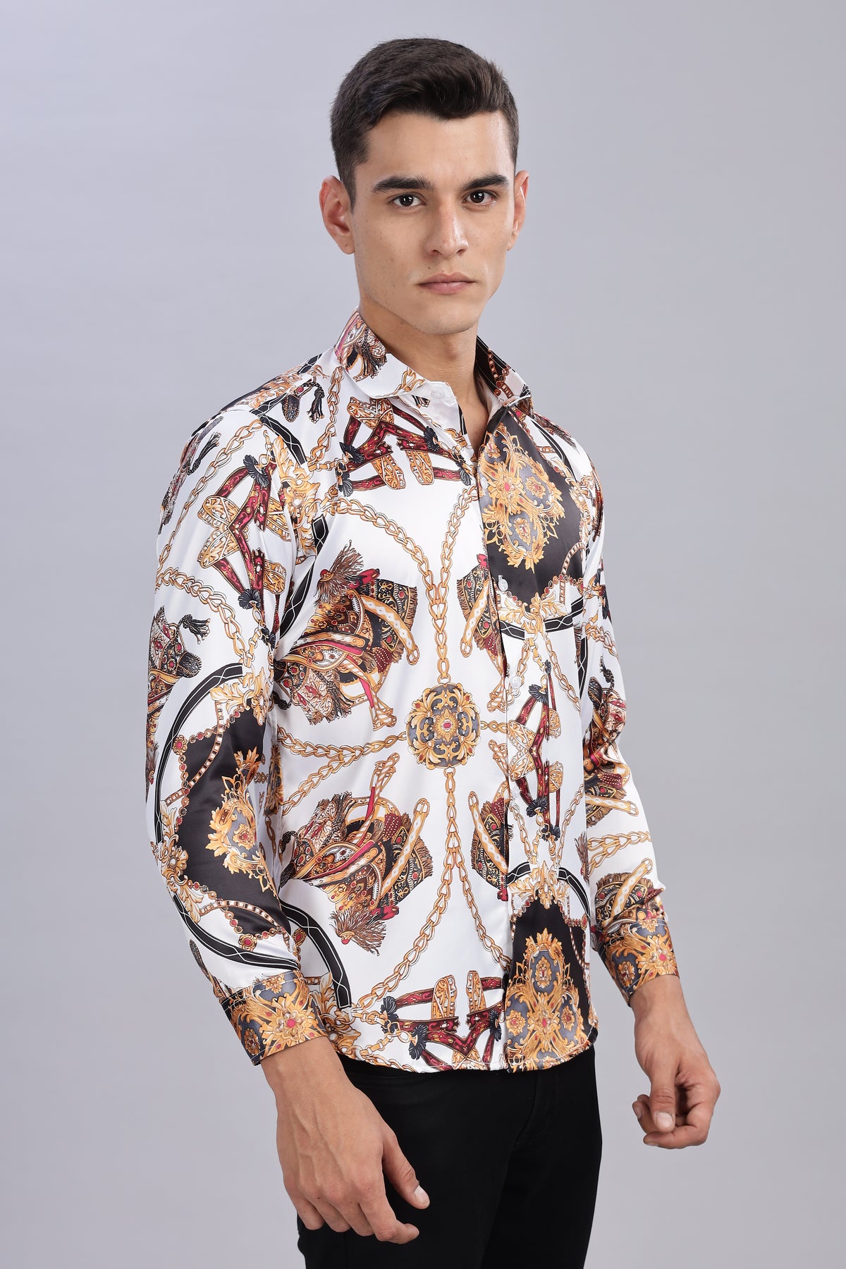 Elevate your style with the SMOKE VINTAGE SATIN SHIRT in white. This shirt blends smooth satin sheen with vintage-inspired design, making a bold statement wherever you go. Its sleek fabric catches the light, adding an edgy, daring vibe to your wardrobe. Perfect for those who aren't afraid to stand out and redefine classic fashion with a modern twist.